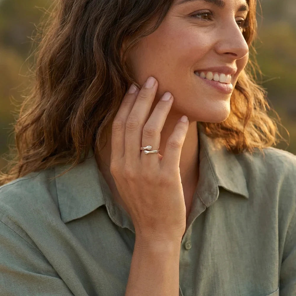 The Always With You Hug Ring™ is designed to feel like a constant embrace. Two delicate hands gently wrapping around your finger — a quiet reminder that you are loved, supported, and never alone.