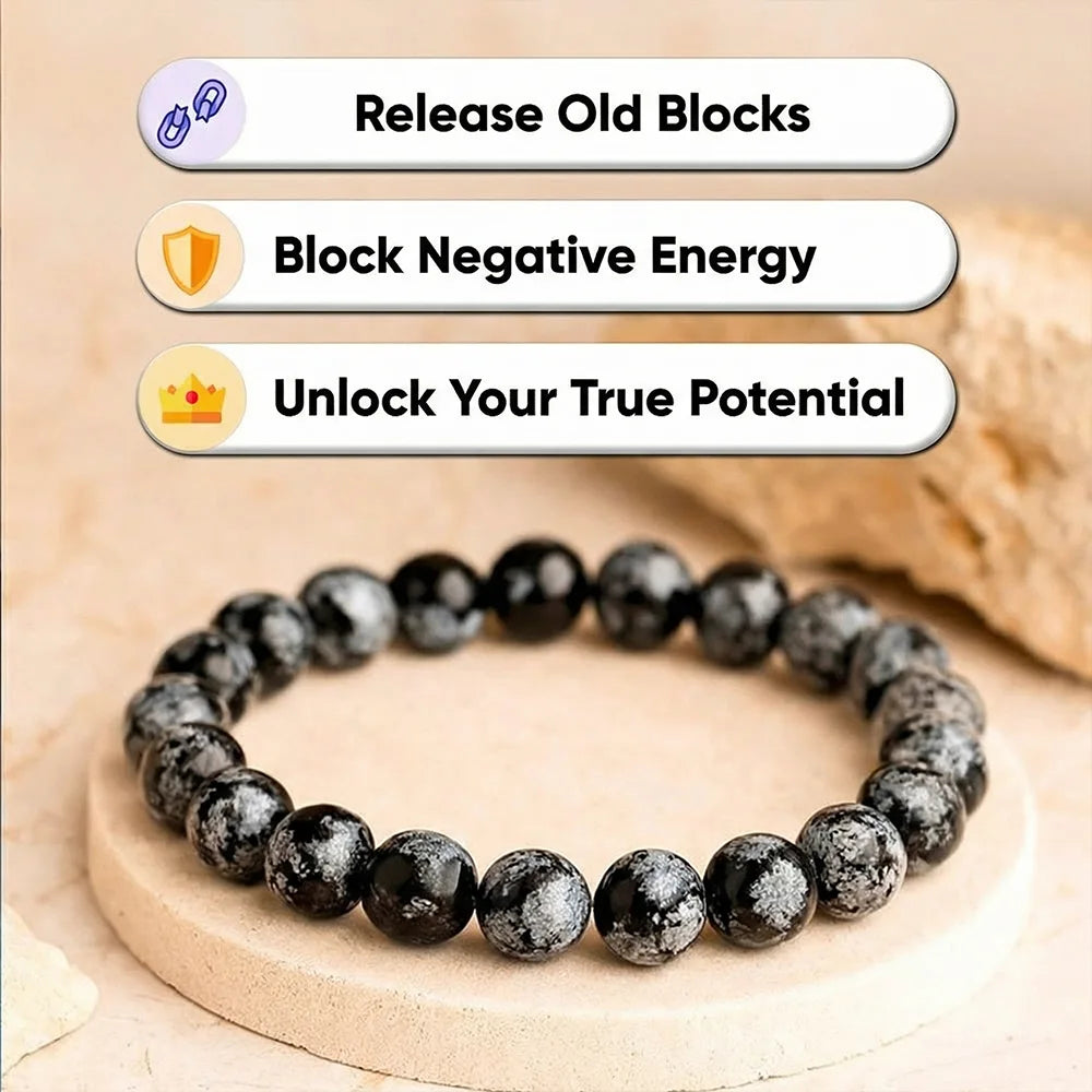 Snowflake Obsidian was born from an exceptional phenomenon: a brutal cooling of lava, which freezes delicate white flakes in its heart. Each bracelet is therefore absolutely unique, as is your healing journey.