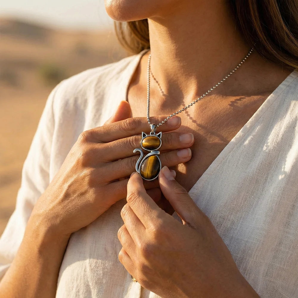 The Cat Guardian Pendant is a symbol of intuition, feminine strength, and energetic protection — inspired by the timeless spiritual symbolism of the cat.